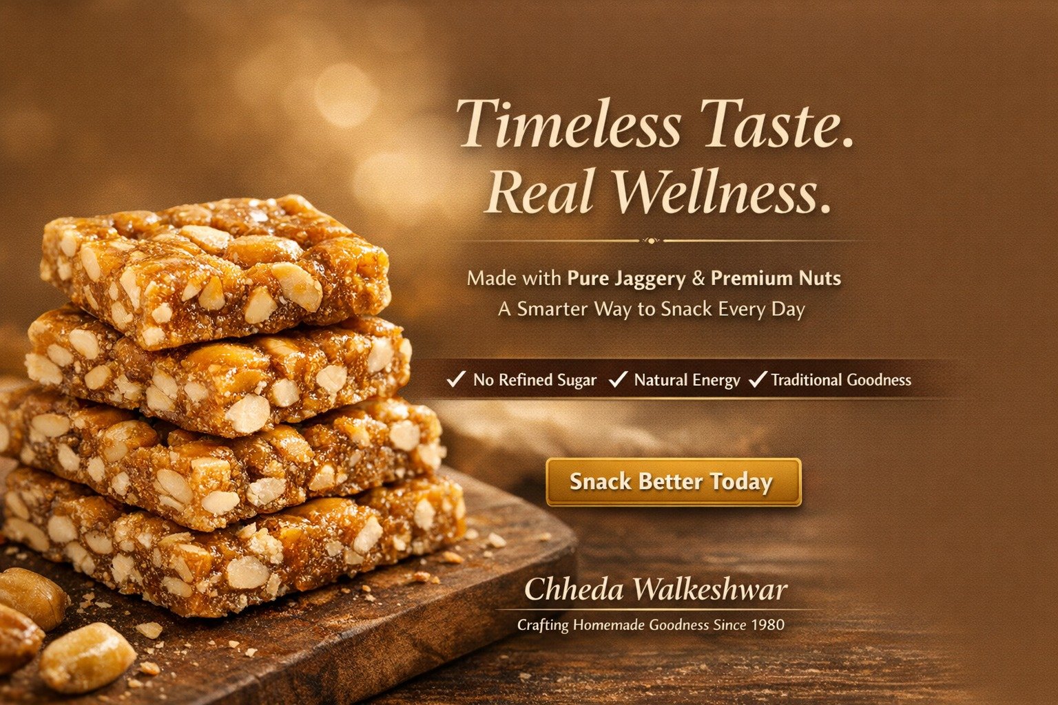 We don't manufacture; we craft. Our Chikkis are a reflection of four decades of Walkeshwar’s trust. Every batch is made with the same dedication to purity that we used back in 1980—because we believe that health shouldn't be a trend, it should be a tradition.